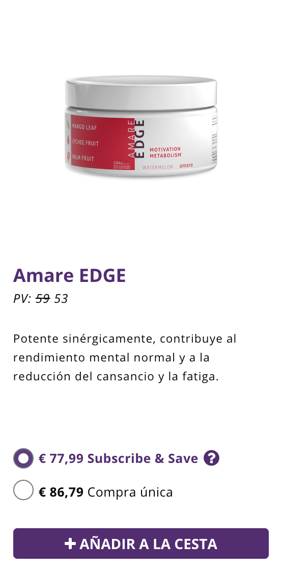 ¡Pide los 3 suplementos más populares de Amare: Edge, Energy+ y MentaBiotics con el paquete Happy Juice! Proporciona claridad mental, enfoque, energía, mejora el estado de ánimo, acelera el metabolismo y optimiza diversos sistemas del cuerpo.